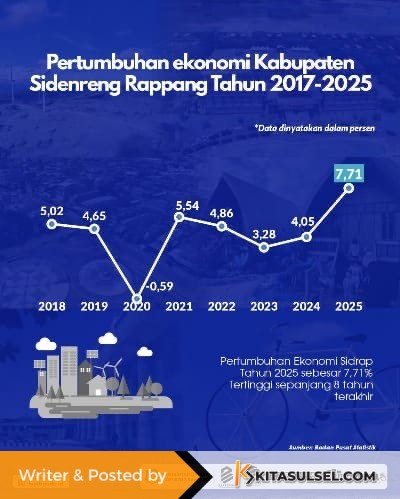 Posisi tersebut menjadikan Sidrap sebagai salah satu daerah dengan pertumbuhan ekonomi terbaik sekaligus paling stabil di kawasan Sulawesi Selatan.