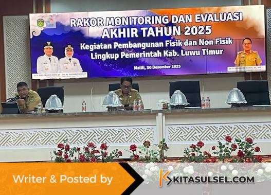 Kitasulsel–LUWUTIMUR – Pemerintah Kabupaten Luwu Timur melalui Bagian Perekonomian dan Administrasi Pembangunan Sekretariat Daerah menggelar Rapat Koordinasi (Rakor) Monitoring dan Evaluasi (Monev) Akhir Tahun 2025 terhadap pelaksanaan kegiatan fisik dan nonfisik di lingkup Pemkab Luwu Timur. Kegiatan ini berlangsung di Aula Sasana Praja Kantor Bupati Luwu Timur, Selasa (30/12/2025).
