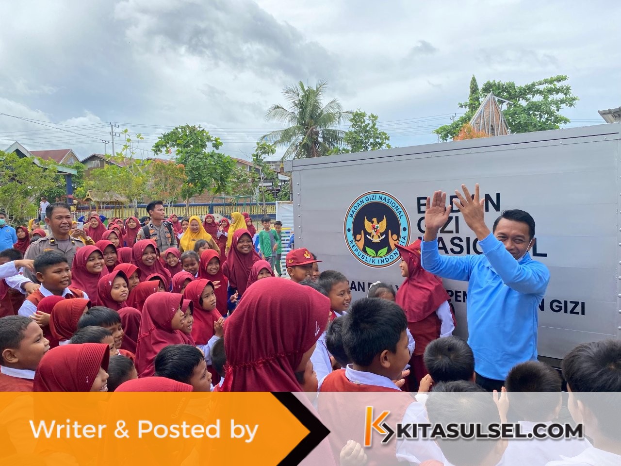 Kehadiran Syaharuddin yang mengemudikan mobil boks pengantar makanan, disambut ceria para murid yang antusias menerima paket Makan Bergizi (MBG).