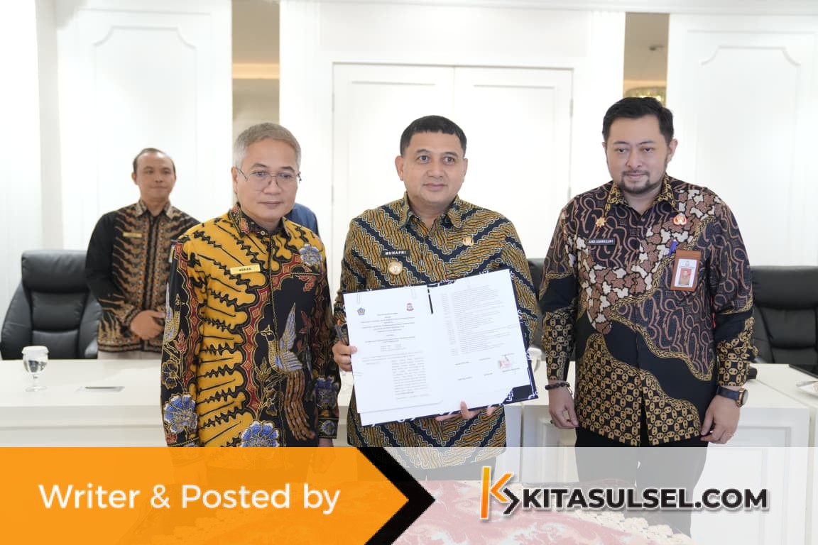 Kitasulsel–MAKASSAR Wali Kota Makassar, Munafri Arifuddin, menandatangani Perjanjian Kerja Sama (PKS) Tripartit tentang optimalisasi pemungutan pajak pusat dan pajak daerah.