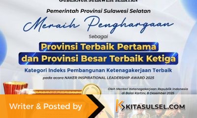 Kitasulsel–JAKARTA Pemerintah Provinsi Sulawesi Selatan (Pemprov Sulsel) kembali menorehkan prestasi membanggakan di tingkat nasional. Pada ajang Naker Inspirational Leadership Award 2025, Sulsel berhasil meraih dua penghargaan...