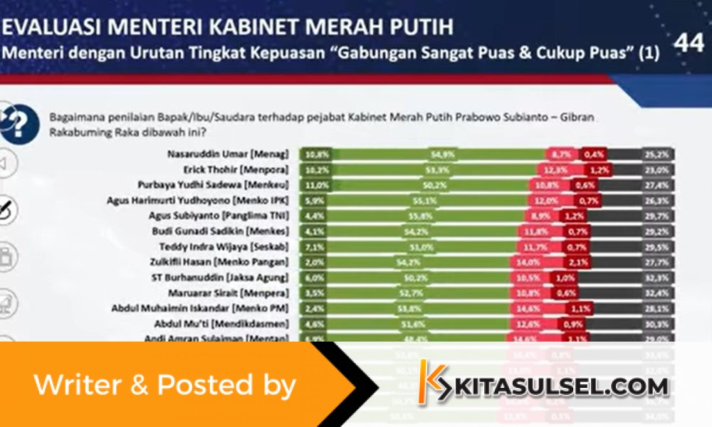 Kitasulsel–JAKARTA Menteri Agama Nasaruddin Umar mendapat apresiasi kinerja tertinggi dari publik berdasarkan survei Poltracking Indonesia, di antara 52 pejabat setingkat Menteri yang tergabung dalam Kabinet Merah...
