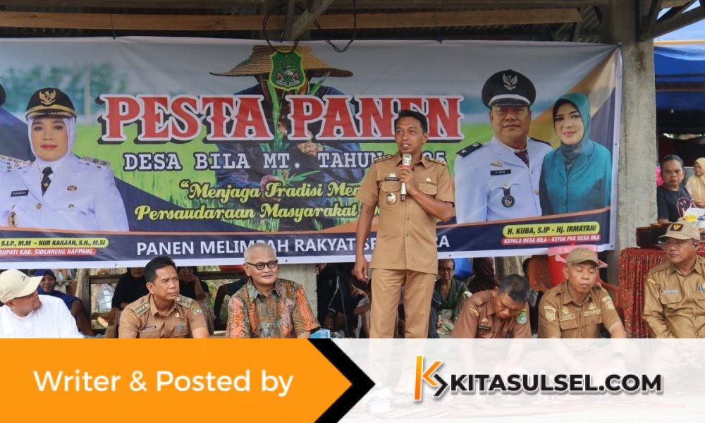 Kitasulsel–MAKASSAR Pesta panen di Desa Bila Riawa, Kecamatan Dua Pitue, Senin (6/10/2025), menjadi ajang masyarakat mengekspresikan rasa syukur atas hasil pertanian sekaligus mempererat silaturahmi. Bupati Sidrap,...