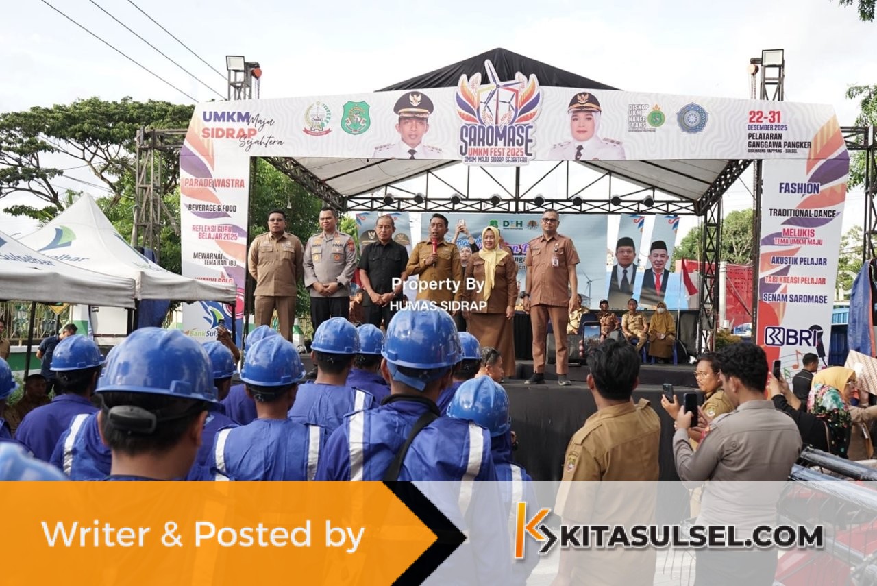 Kitasulsel–SIDRAP – Bupati Sidenreng Rappang (Sidrap), Syaharuddin Alrif, secara resmi mengukuhkan petugas kebersihan yang tergabung dalam Pasukan Biru di area Saromase UMKM Fest, Pelataran Monumen Ganggawa, Senin (29/12/2025).