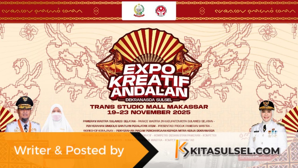 Kitasulsel–MAKASSAR Makassar kembali menjadi pusat perhatian industri kreatif dengan digelarnya Expo Kreatif Andalan 2025 yang mengusung tema “Karya Kreatif, Branding Efektif, Go International.” Perhelatan akbar kolaborasi Pemerintah Provinsi Sulawesi Selatan bersama Dekranasda Sulsel ini berlangsung selama lima hari, mulai 19–23 November 2025 di Trans Studio Mall Makassar.