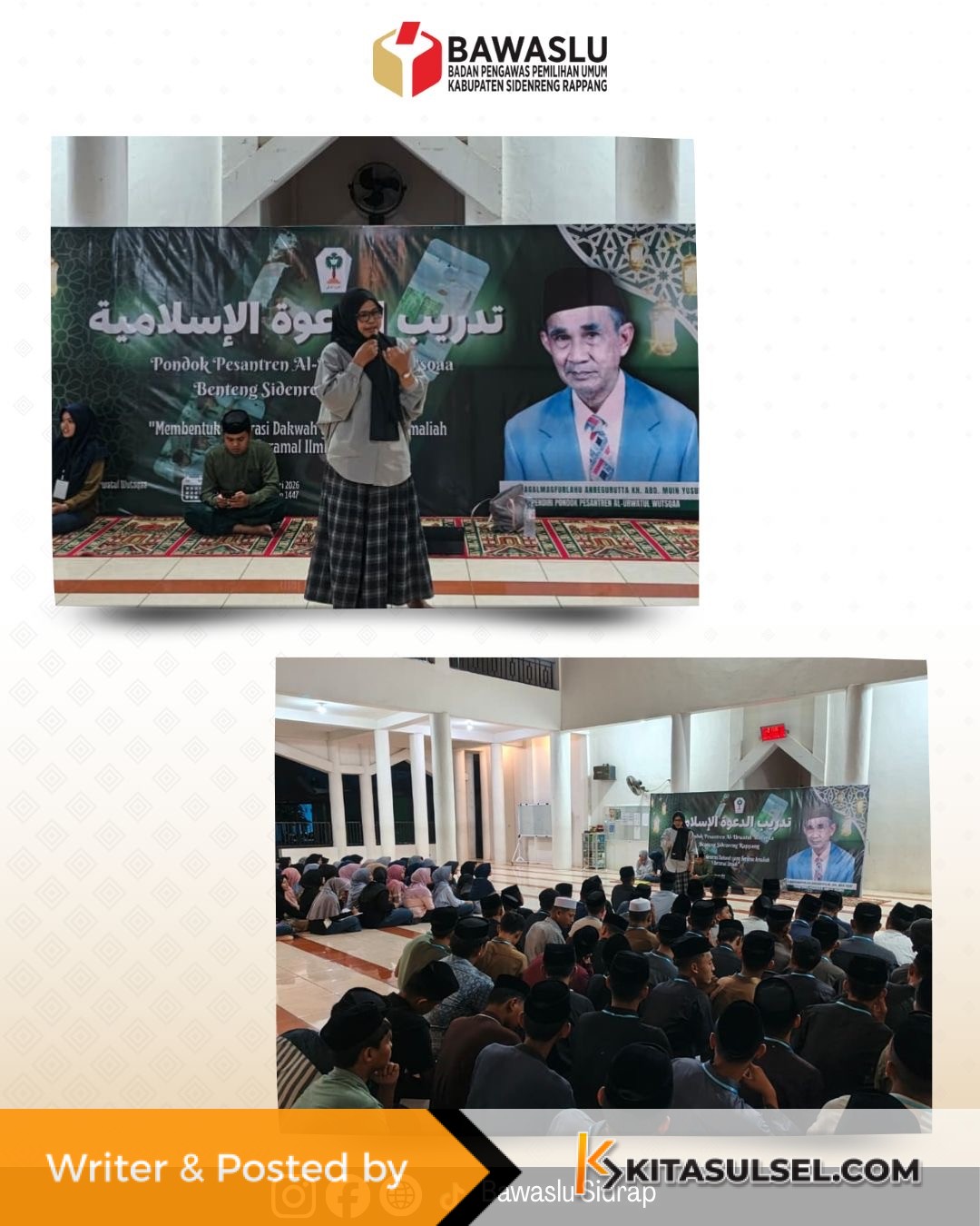 KITASULSEL—SIDRAP – CEO PT Annur Maarif, Dr. H. Bunyamin M. Yapid, Lc., M.H., memberikan materi pada kegiatan Manasik Haji Terintegrasi Tingkat Kecamatan Zona 4 Maritengngae musim haji 2026/1447 H, yang digelar di Masjid Raya Sidrap, Kamis (12/02/2026).