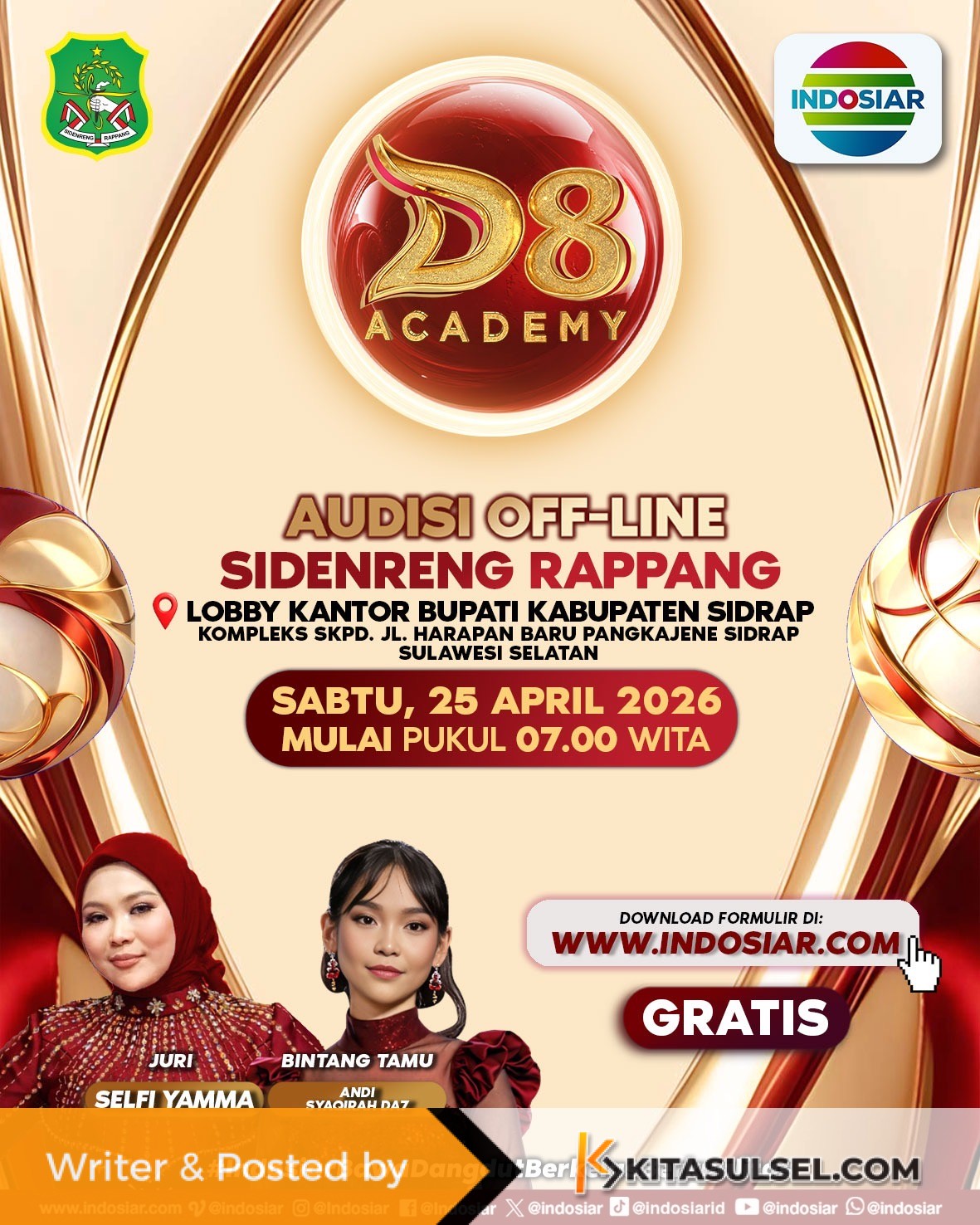 Audisi “D’Academy 8” Digelar di Sidrap-Makassar Akhir Pekan Ini, Selfi Yamma Jadi Juri