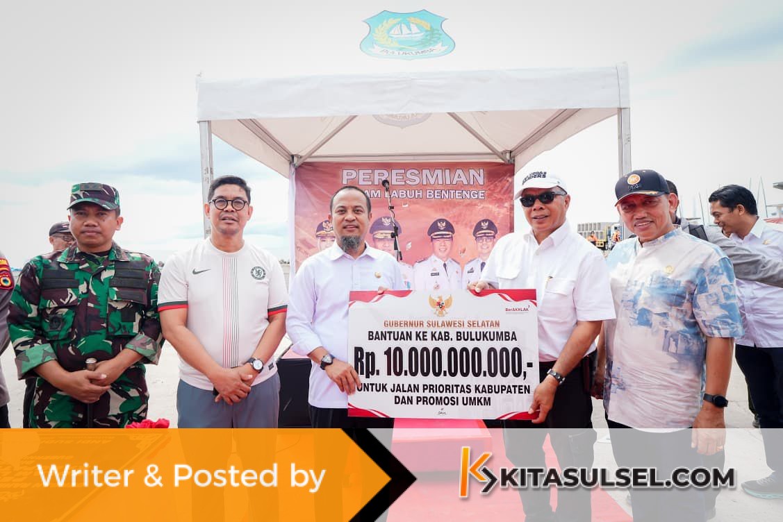 Selain peresmian fasilitas, Gubernur juga menyerahkan bantuan keuangan sebesar Rp10 miliar kepada Pemerintah Kabupaten Bulukumba. Dana tersebut dialokasikan untuk rehabilitasi jalan menuju potensi wisata serta program prioritas pembangunan daerah.