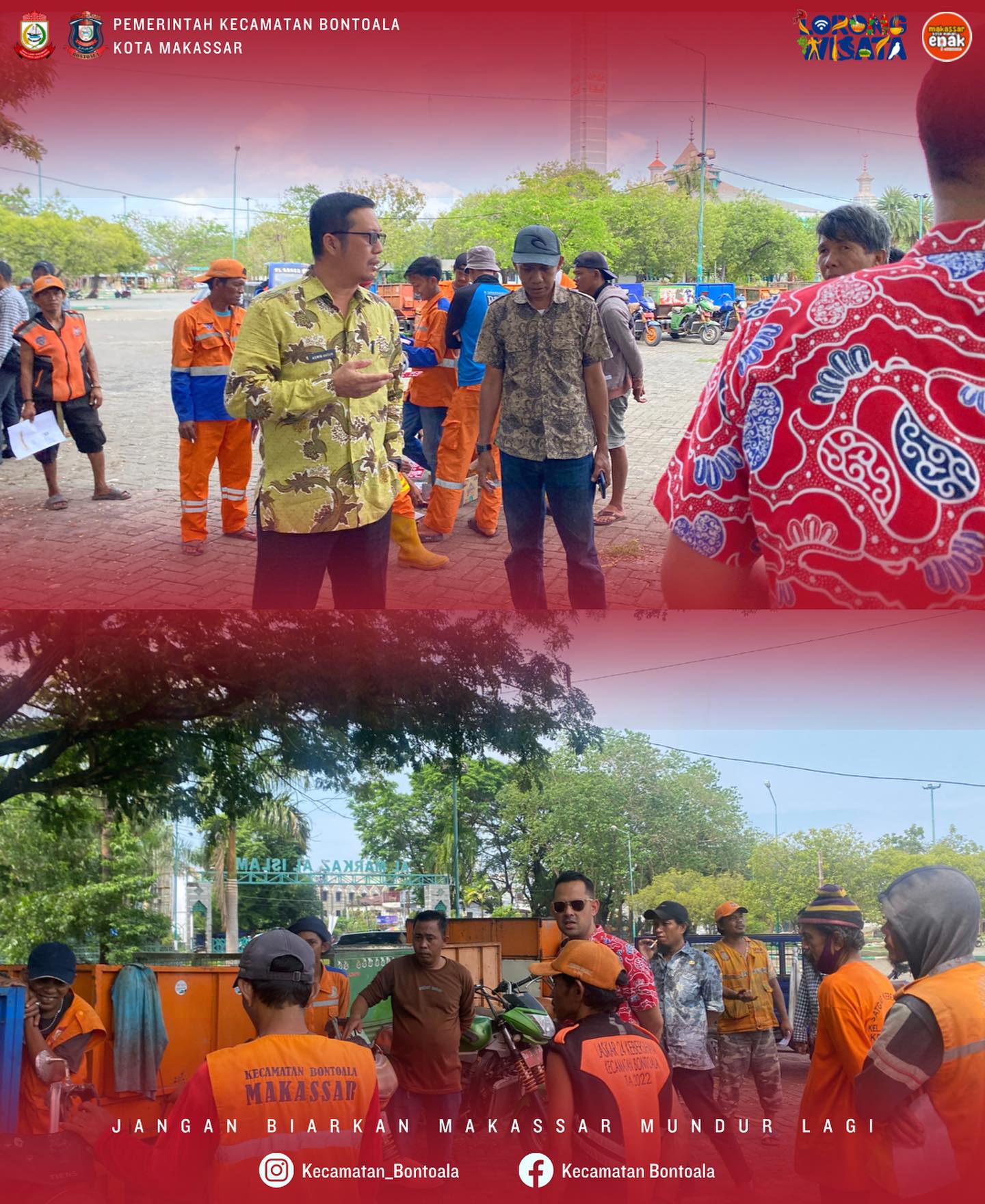 Plt Camat Bontoala Aswin Kartapati di hadapan petugas armada kebersihan berharap agar tetap memperhatikan faktor keselamatan dalam melaksanakan tugas tugas kebersihan.