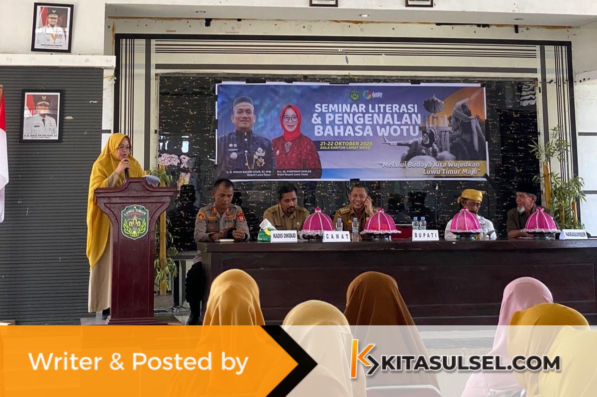 Kitasulsel–LUWUTIMUR Pemerintah Kabupaten Luwu Timur melalui Dinas Pendidikan dan Kebudayaan menggelar Seminar Literasi dan Sosialisasi Bahasa Wotu yang berlangsung di Aula Kantor Camat Wotu, Selasa (21/10/2025).