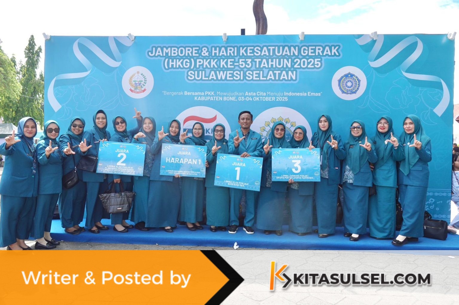 Kitasulsel–LUWUTIMUR Tim Penggerak PKK Kabupaten Luwu Timur (Lutim) kembali mengharumkan nama daerah dengan meraih empat juara pada peringatan Hari Kesatuan Gerak (HKG) PKK ke-53 dan Jambore PKK Tingkat Provinsi Sulawesi Selatan tahun 2025, di Lapangan Merdeka Bone, Sabtu (04/10/2025).