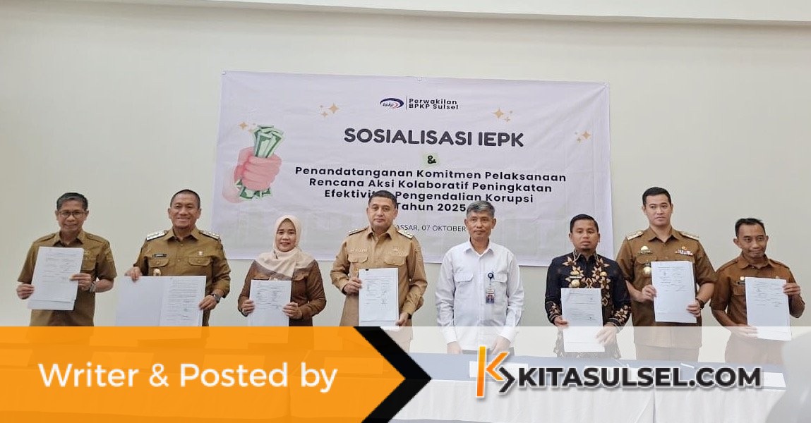 Komitmen itu ditegaskan melalui Penandatanganan Komitmen Pelaksanaan Rencana Aksi Kolaboratif Pengendalian Korupsi Tahun 2025 yang dirangkaikan dengan Sosialisasi Indeks Efektivitas Pengendalian Korupsi (IEPK), Selasa (7/10/2025) di Kantor BPKP Sulawesi Selatan, Makassar.