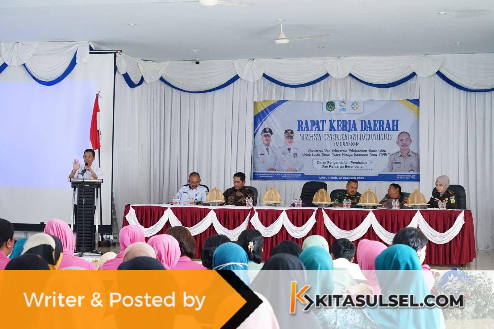 Kitasulsel—LUWU TIMUR — Pemerintah Kabupaten Luwu Timur terus menunjukkan komitmennya dalam meningkatkan kualitas hidup masyarakat melalui berbagai program strategis. Salah satunya adalah melalui Dinas Pengendalian Penduduk dan Keluarga Berencana (DPPKB) yang menggelar Rapat Kerja Daerah (Rakerda) Tahun 2025, mengusung tema “Akselerasi dan Kolaborasi Pelaksanaan Quick Wins untuk Luwu Timur Juara menuju Indonesia Emas 2045.”