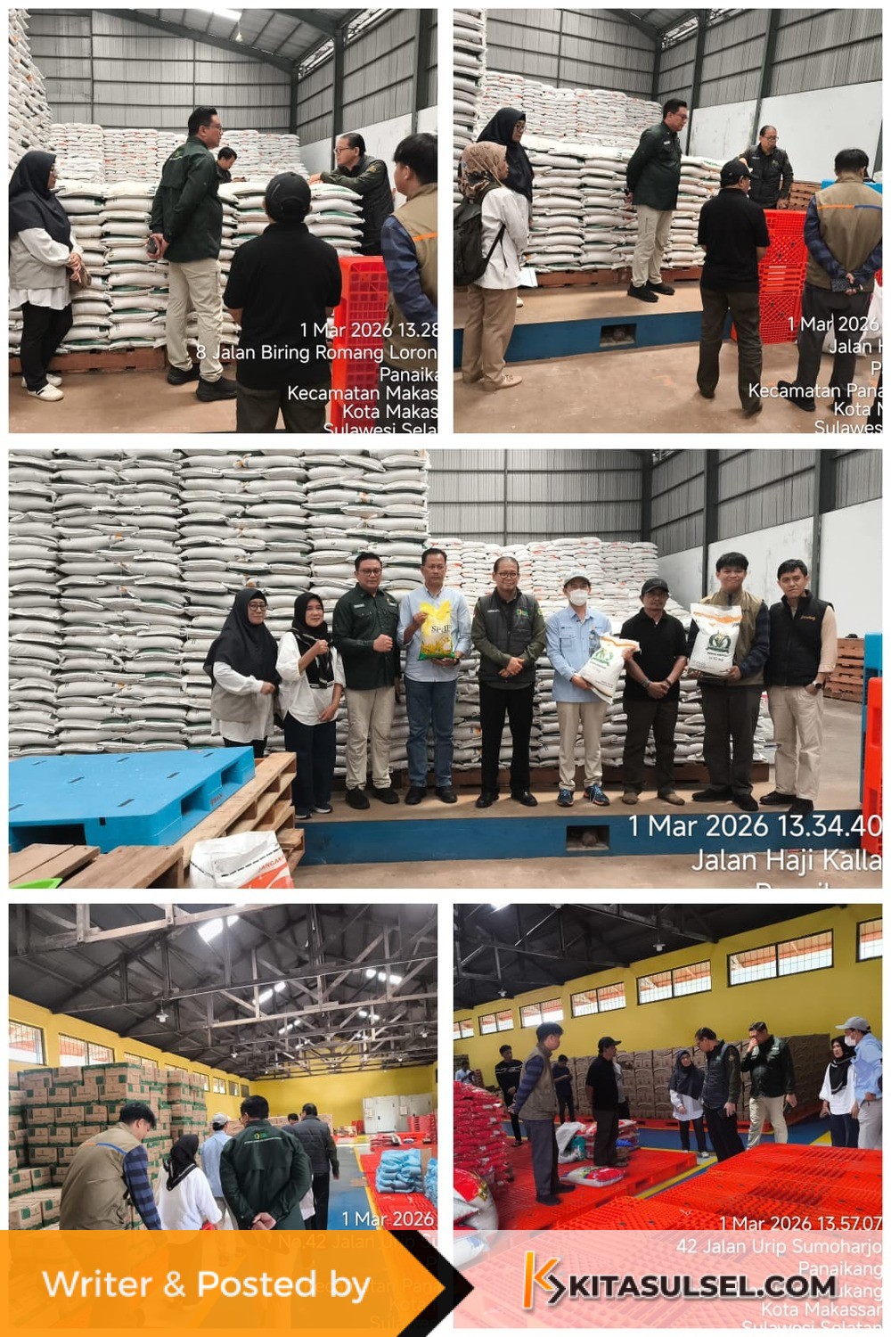 Pengawasan lapangan dilanjutkan pada Senin (2/3/2026) oleh tim gabungan dari unsur Badan Pangan Nasional, Unit Industri dan Perdagangan Polda Sulsel, serta organisasi perangkat daerah Pemprov Sulsel. Tim melakukan pemantauan di gudang PT Mitra Abadi Jaya Sukses di Jalan Sultan Abdullah Raya, Makassar.