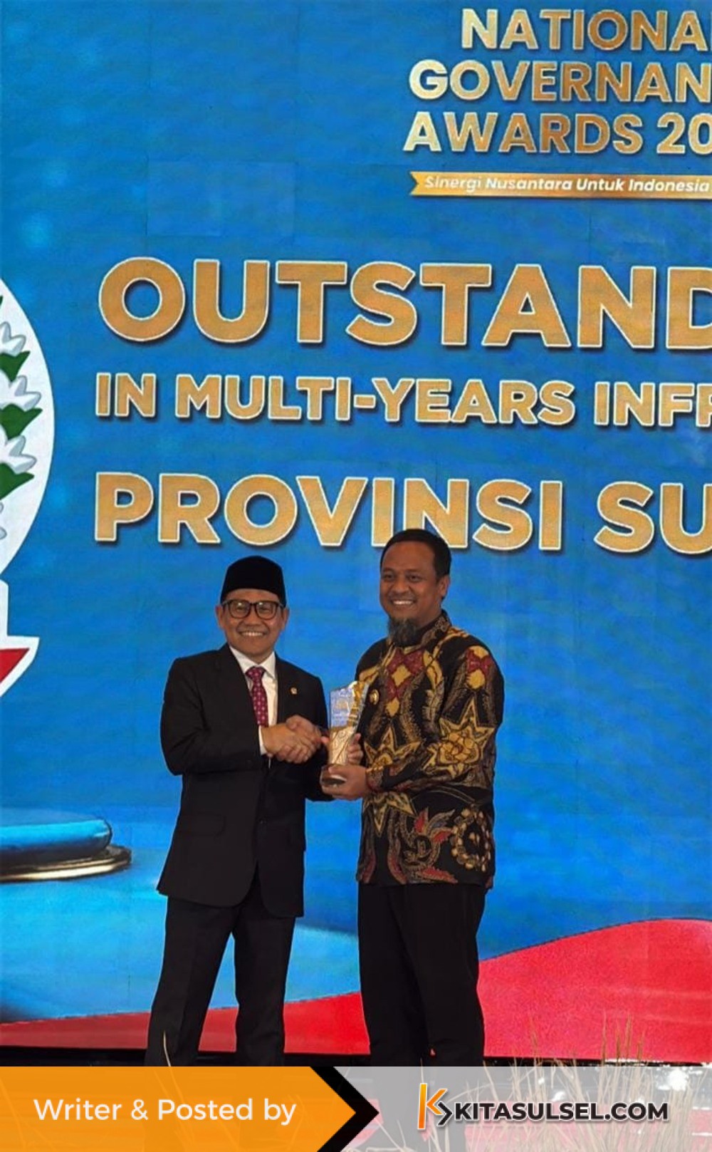 Kitasulsel–JAKARTA – Gubernur Andi Sudirman Sulaiman menerima penghargaan kategori Outstanding Province in Multi-Years Infrastructure Development pada ajang National Governance Awards: Sinergi Nusantara untuk Indonesia Emas.