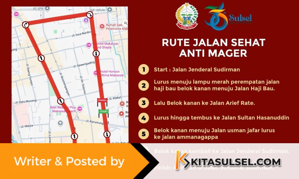 Kitasulsel–MAKASSAR Pemerintah Provinsi Sulawesi Selatan kembali menggelar kegiatan Jalan Sehat Anti Mager (Malas Gerak) sebagai bagian dari rangkaian peringatan Hari Jadi ke-356 Provinsi Sulawesi Selatan. Kegiatan...