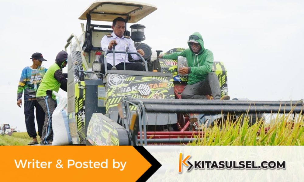 Kitasulsel–SIDRAP Bupati Sidenreng Rappang (Sidrap) H. Syaharuddin Alrif mengoperasikan langsung mesin panen padi (combine harvester) saat memimpin panen raya sekaligus pengolahan lahan program IP300 di Dusun...