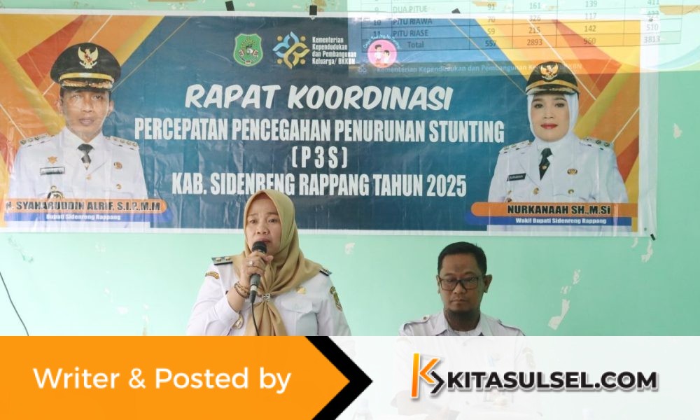Kitasulsel–SIDRAP Wakil Bupati Sidenreng Rappang, Nurkanaah, membuka Rapat Koordinasi (Rakor) Tim Percepatan Penurunan Stunting di Kantor Dinas Pengendalian Penduduk dan Keluarga Berencana, Rabu (20/8/2025). Didampingi Kepala...