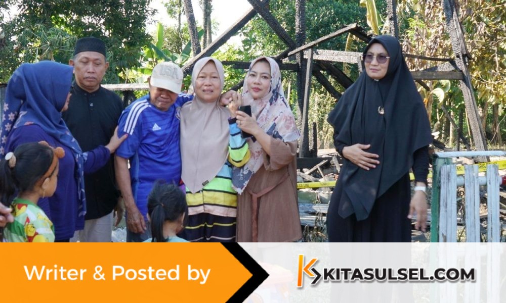 Kitasulsel–SIDRAP Ketua Tim Penggerak PKK Kabupaten Sidenreng Rappang (Sidrap), Hj. Haslindah Syaharuddin, S.Pd., mengunjungi lokasi kebakaran di Dusun Salobompong, Desa Damai, Kecamatan Watang Sidenreng, Sabtu (26/7/2025)....