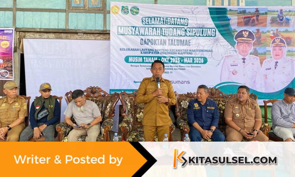 Kitasulsel–SIDRAP Suasana hangat penuh kebersamaan mewarnai Musyawarah Tudang Sipulung yang digelar Gabungan Kelompok Tani (Gapoktan) Talumae, Kelurahan Lautang Benteng, Kecamatan Maritengngae, Selasa (7/10/2025). Bupati Sidenreng Rappang...