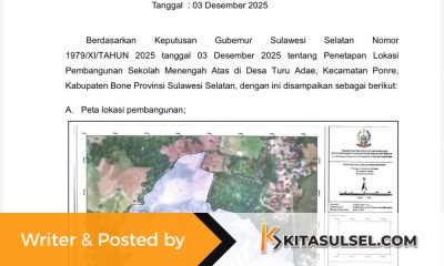 Kitasulsel–BONE Pemerintah Provinsi Sulawesi Selatan kembali menegaskan komitmennya dalam peningkatan akses pendidikan melalui pembangunan Sekolah Menengah Atas (SMA) baru di Desa Turu Adae, Kecamatan Ponre, Kabupaten...